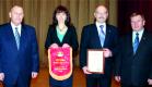 Ректор БНТУ Б.М. Хрусталев, председатель профбюро ПСФ Е.С. Третьякова, декан ПСФ А.М.Маляревич и председатель профкома работников В.А. Смёткин после вручения награды факультету – победителю.